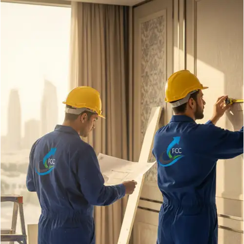 Complete interior fit-out solutions including partition walls, flooring, ceiling systems, kitchen & bathroom installations, and custom furniture for commercial and residential spaces.