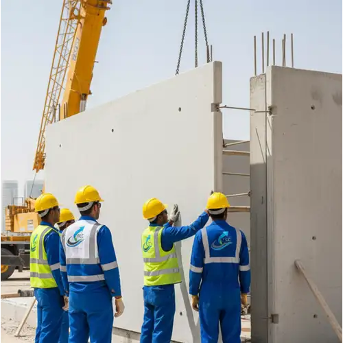Erection and installation of high-quality precast concrete elements including walls, beams, columns, and architectural features for faster construction.